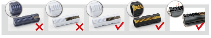 The AOE Piston lasts significantly longer when mated with the AOE Cylinder Head (Hulk green), helping to make your AEG much more reliable.